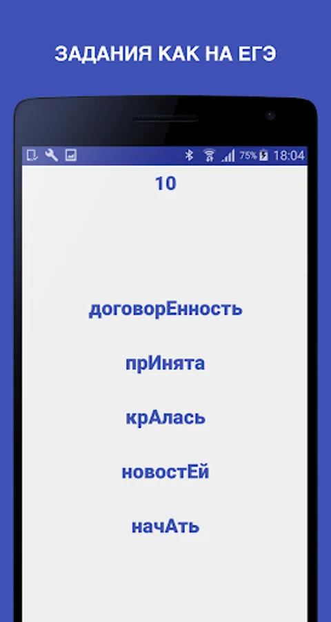 Do you want to prepare for the exam in Russian quickly and efficiently? Then this app is for you. The program will select the most difficult words for you, and the current dictionary will allow you to perform even the most complex stress tasks easily and quickly.