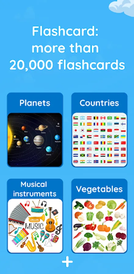 - There are more than 20,000 flashcards with hundreds of different topics to help parents save a lot of money when using paper flashcards and more than 1000 memory activities, games to activate the children's brain.
