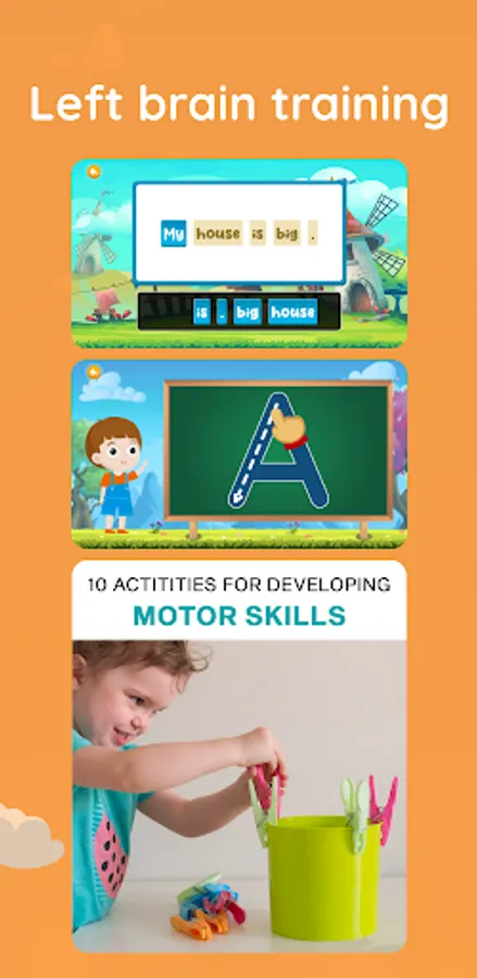 In Talents Kids app, children will have the opportunity to learn languages, participate in activities that activate the right and left brain, learn to read, math, and music to help children improve their long-term memory, language development, and ability. Speed reading, fast calculation ability, rich imagination and creativity.