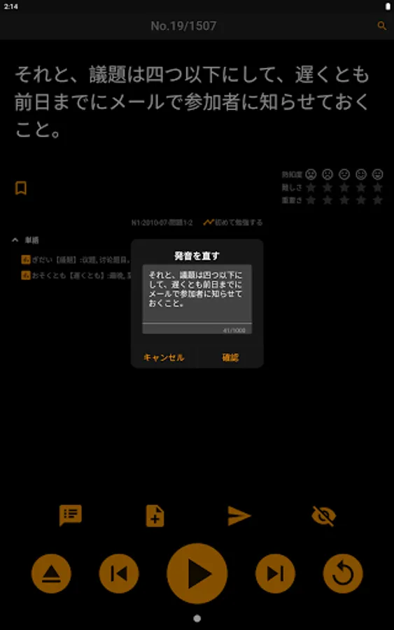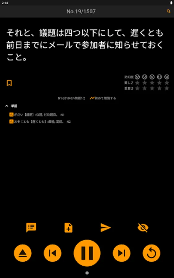 Main Features: Eliminate a large number of overly simple sentences and repeated sentences. Sort by importance, difficulty and mastery. More efficient use of fragments of time to listen to Japanese. Simple interface without advertising, dark background, more energy saving and vision protection.