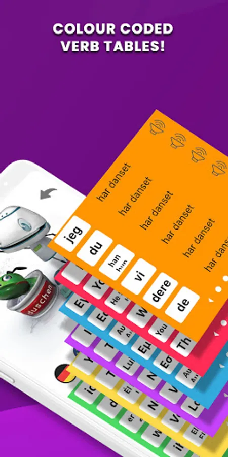 - Each verb has a LearnBot visual image and animation to help you remember each verb.