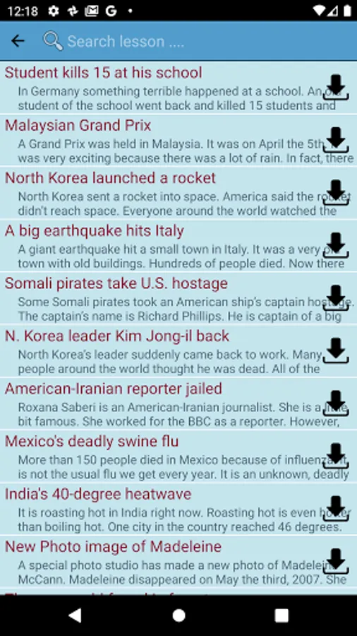 The app offers a variety of articles and scenarios, ranging from basic to advanced levels, making it suitable for learners of all levels. You'll find articles and audio tracks covering daily life topics, including everything from transportation to social networking, to help you improve your listening and speaking skills in a practical and relatable manner.