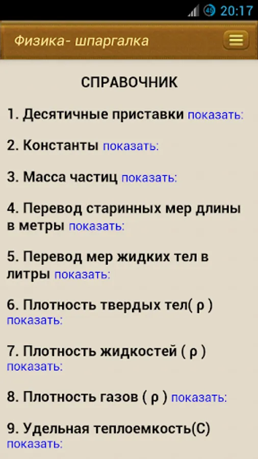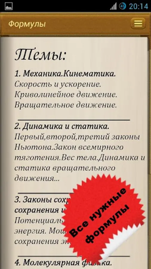 This application is a cheat sheet with all sections of Part C in physics. Just present here the most important formulas on all the topics of school physics course.
