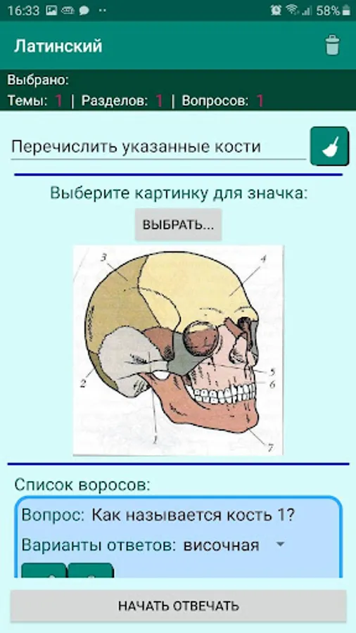 The application has the ability to add correct answers to the questions, which can be spied on during the self-test if you cannot remember the desired answer. It is also possible to add images from your device to questions, since in the presence of visual images, memorization is faster and easier