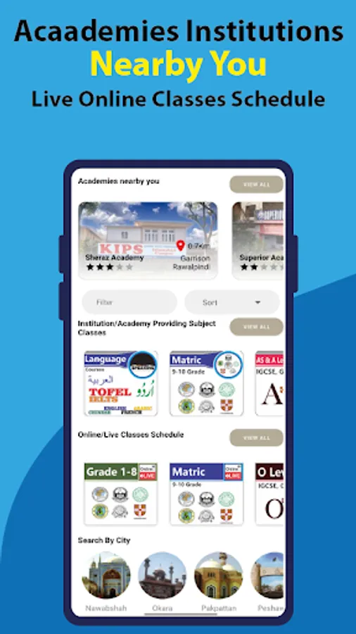 Education Solution is an inclusive digital educational platform in Pakistan that aims to promote academic excellence by giving you online access to academic conveniences such as educational institutes including schools, colleges, and academies. You can also access bookstores, uniform stores, course teachers, Qur'an teachers, pick-and-drop services, hostels, and much more! This application works on longitude and latitude bases to provide you access, to the finest resource at the nearest locations