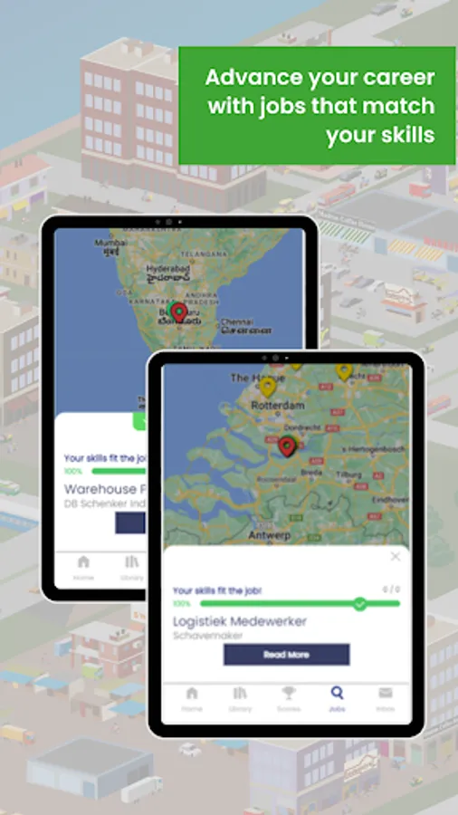 Download the 21CC Skilled app en learn more about the exiting world of logistics and companies around you.