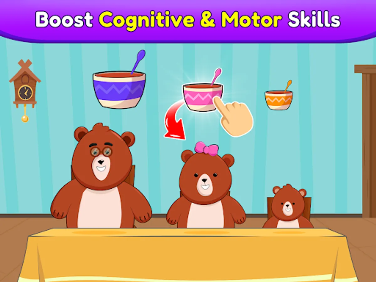 Free toddler games in the app, provide great learning and entertainment experience for preschool children, both baby boys and girls. They will spend time flexing and improving their motor skills, start recognizing colors and shapes, follow through the baby games with simple storyline.