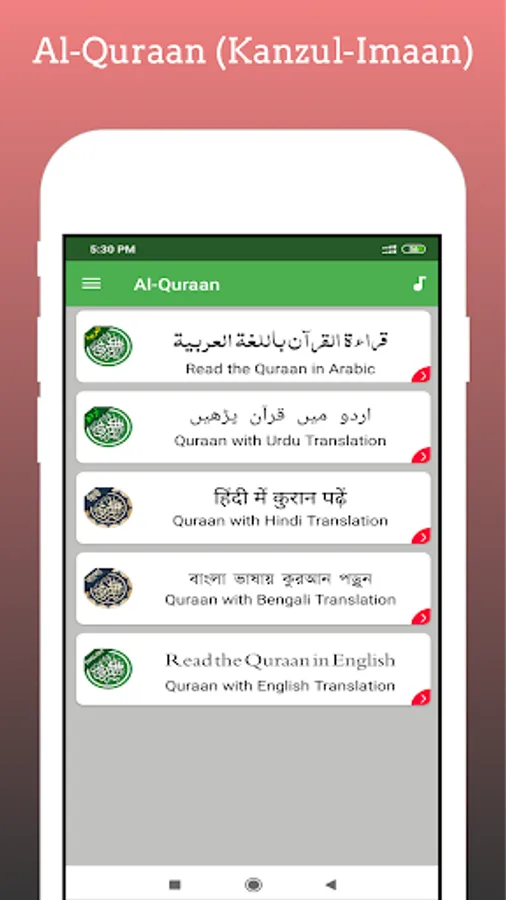 6. Available translation in Bengali, Hindi, English, Arabic and Urdu Languages.