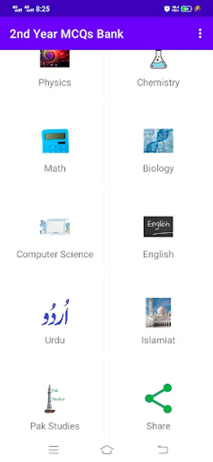 This app contains MCQs questions for 12th class with answers. It contains all subjects class 2nd Year MCQs. Objective questions for 12th class are available in this app. It is the app having MCQs questions for FA FSC ICS students with solved MCQs for grade 12th. It is for all Punjab boards 12th class objective papers. It is also for all boards MCQs questions bank for 12th class. Intermediate 12th MCQs bank for part 2 students can get best preparation of their exams. Exam questions for all subjects include in this 12th MCQs bank app. Second Year All Subjects MCQs bank with Objective is a good collection of questions from past papers. MCQs 2nd Year are prepared using good content from FBISE and Punjab boards. 12th class all subjects solved MCQs and objective solved questions are regularly updated. 2nd Year All subjects MCQs will help you get good marks. FSC Part II MCQs with solution for good grades. Inter Part 2 MCQs and objective questions for exam preparation. FA Solved MCQs can be learnt for better preparation for final exams. FA English 2nd Year is challenging subject for students, so we have added much English MCQs for FA syllabus. FSC 2nd Year Physics MCQs good for best grades. 2nd Year Chemistry objective MCQs for exam preparation. Class 12th Computer Science MCQs and objective questions are included. 2nd year Urdu and English MCQs will help you get good grades. The app contains following content for grade 12