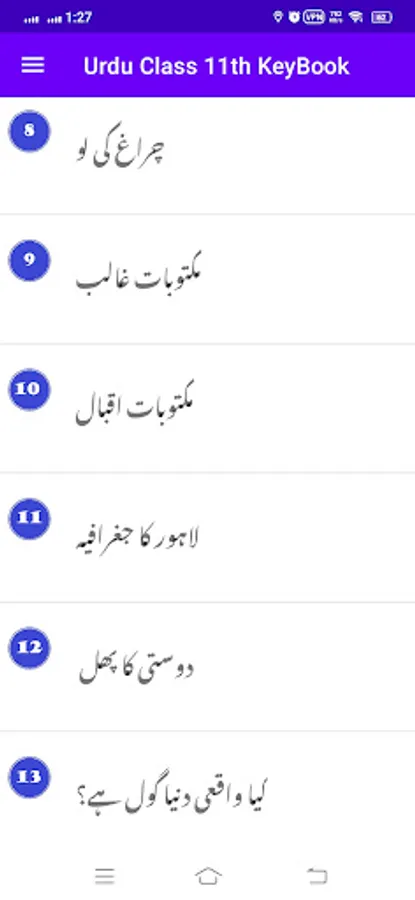 This app of Urdu 11th helping notes with solved past Papers are to help students and teachers learn the subject easily. Class 11th Urdu Key book. 11 Class Urdu helping book. Urdu first Year solved notes. 1st Year Urdu notes for Punjab boards. PCTB Urdu key and helping book for class 1st year. This is 1st year Urdu notes with solved exercises and solved questions. first year Urdu handbook is to help the students learn the Urdu subject easily. This app is about 11 grade Urdu subject helping book. Urdu 1st year guide book will help students learn the subject easily. First Year Urdu handbook will make students and teachers get high grades in exams. 1st Year Urdu solved past papers are included in this app. The content for this app is collected from multiple sites. If you found any copyrighted content in this app please let us know, we will remove it.