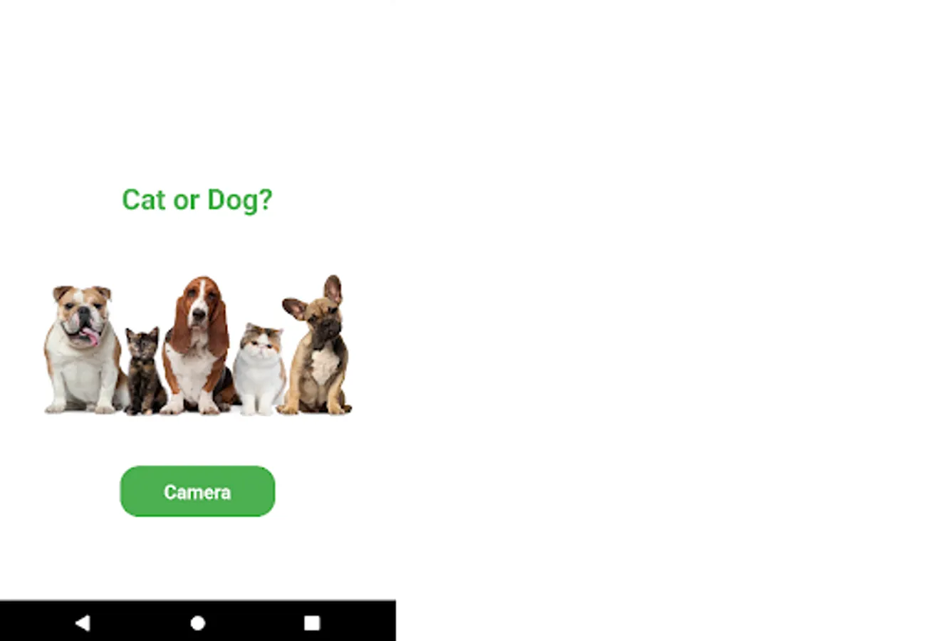 Determine cat or dog? - an application that uses machine learning to determine the name of an animal cat or dog from a photo using a camera in real time.
