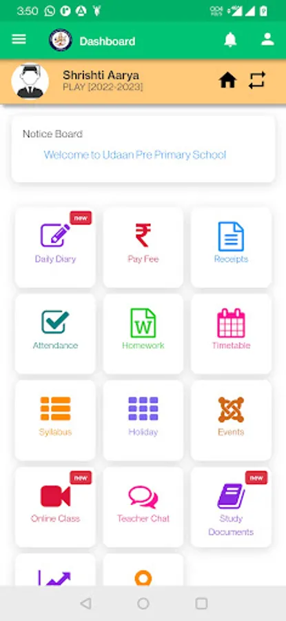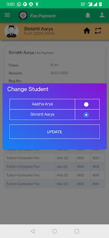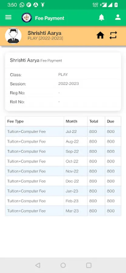 - Get details of fees paid and also an option to pay directly from mobile