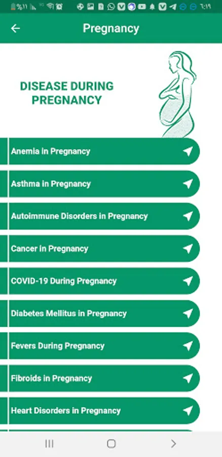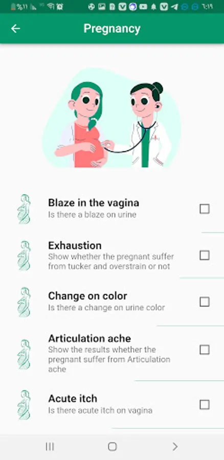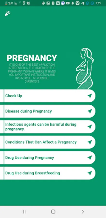 A smart system is designed for easing women's diagnosis during pregnancy. The core purpose of this research work is to build up an Android application which gives a deliberate approach in providing the best diagnosis of pregnancy so that women will not be caught in the is the complications during pregnancy. Android application uses Machine Learning algorithms such as decision tree algorithm. In this paper, decision tree algorithm (DT) is used for predicting pregnancy states which performs better and more robust than the other models. The best diagnosis of pregnancy is predicted using C4.5 and CART algorithms. Proposed system had used decision tree algorithms that employed a database of the most diseases associated with women during pregnancy. Pregnant women interacted with a proposed system via an android application mobile interface, they had provided the algorithm with the case conditions, which processed to guide both physician and pregnant women on the level of risk. Response of the system is based on input data that is processed according to predetermined variables and decision tree outcomes. Implemented experiments had proven the efficiency of the system to facilitate diagnosis for better pregnant mothers' health care.