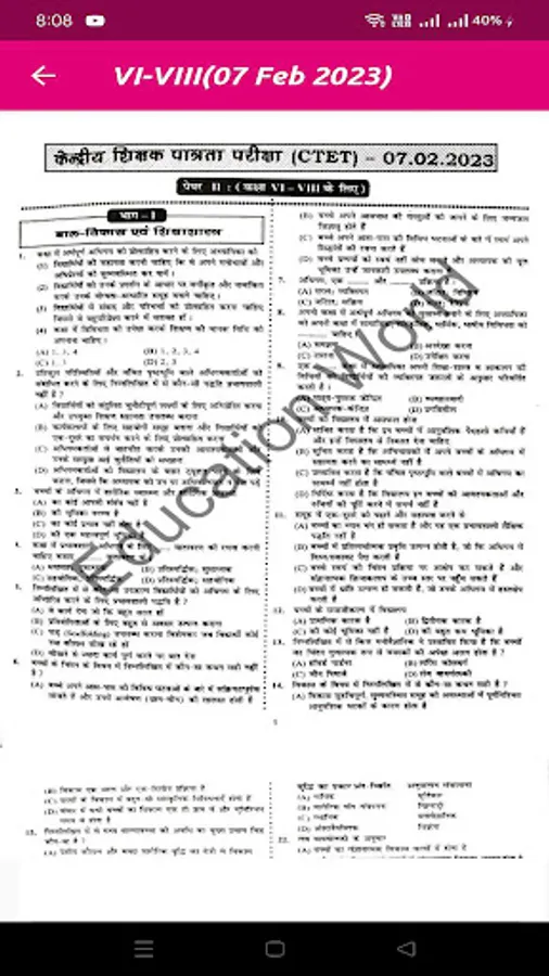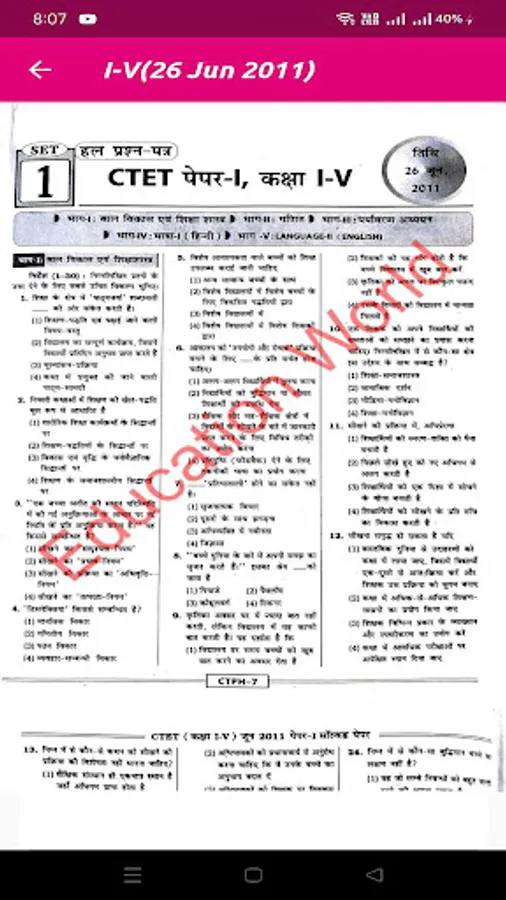 This App is Ctet Exam Preparation App.this App Contains Ctet Paper I & II Last 12 Years Ctet Previous Year Question Paper in Hindi With Answer. In Which Hindi, English, Sanskrit, Child Development and Pedagogy, Social Science / Studies, Mathematics, Environmental Studies, All Subjects Have Been Answered With Questions. By Which Students Can Prepare for Class I-V and VI-VIII Ctet Exam. And Read Ctet Previous Year Paper.