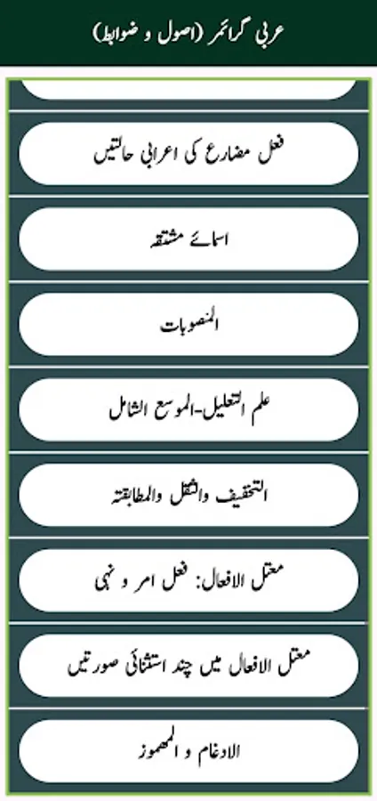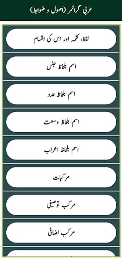 Whether you're a beginner or looking to refine your understanding, this comprehensive and user-friendly app offers everything you need to build a strong foundation in Arabic grammar. Designed especially for Urdu-speaking learners, all the notes are chapter-wise, well-organized, and written in both Urdu and Arabic, making it easy to follow, understand, and absorb.