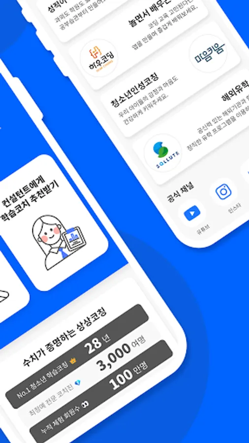 •Learning coaching is available for all grades and all subject classes, including elementary, middle, and high school, as well as Korean, English, math, science, and social studies.