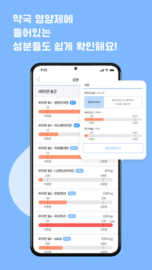 You can check the ingredients and contents of vitamins, nutrients, and supplements at a glance.