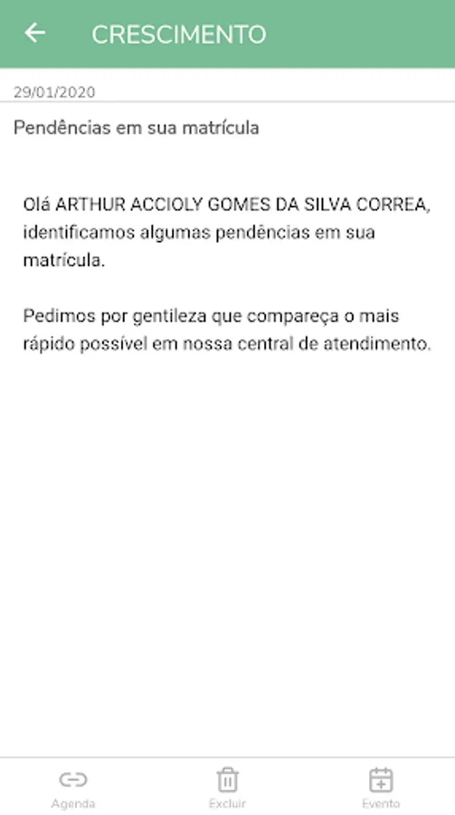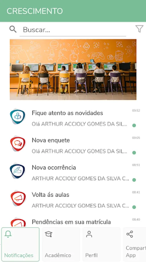 information such as: Announcements, Pedagogical Calendar, Registration of