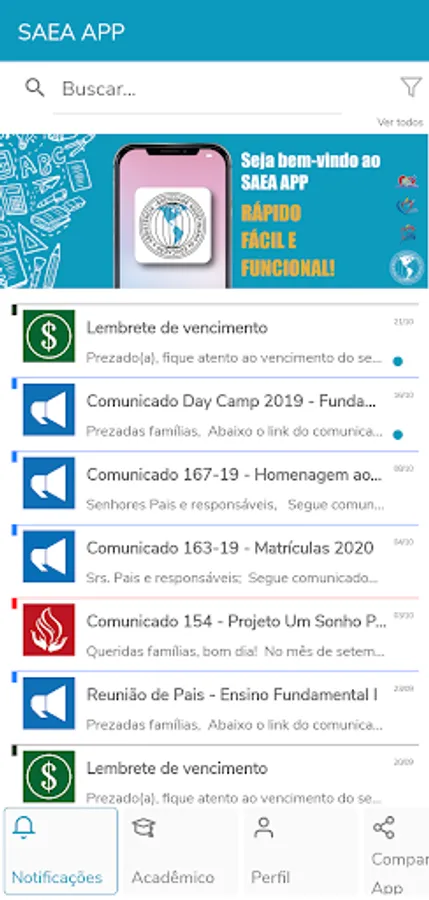 Single point of institutional communication, academic and financial services. Students and family have access to announcements, notices, reminders, grades, attendance, financial statement, occurrences, timesheet and more.