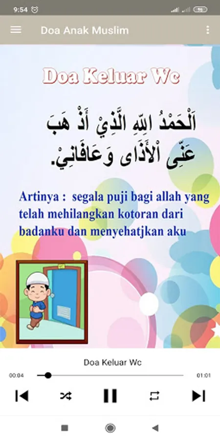 Muslim Children's Prayer is an educational application that is suitable for children where this application trains children to learn to pray and is equipped with interesting animations, reading lyrics and the meaning of prayer and is also supported by interesting images. This Muslim Children's Prayer can help children easily memorize children's daily prayers.