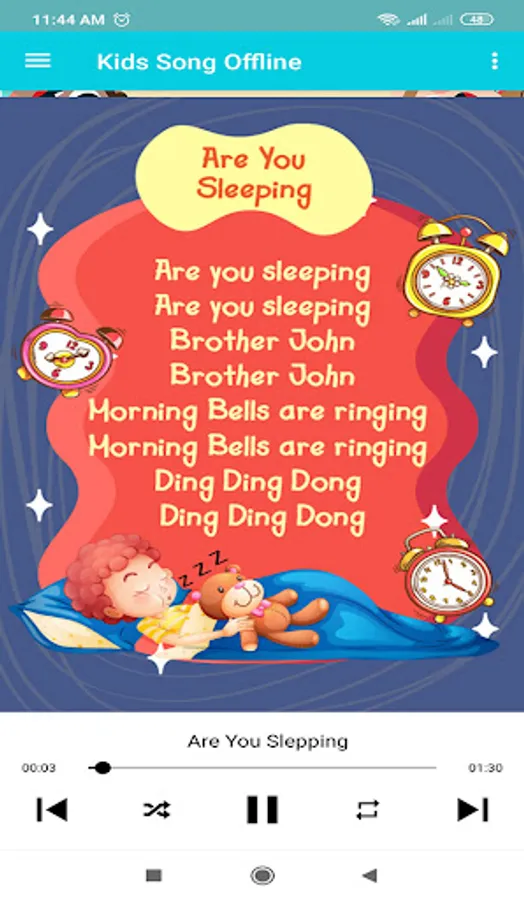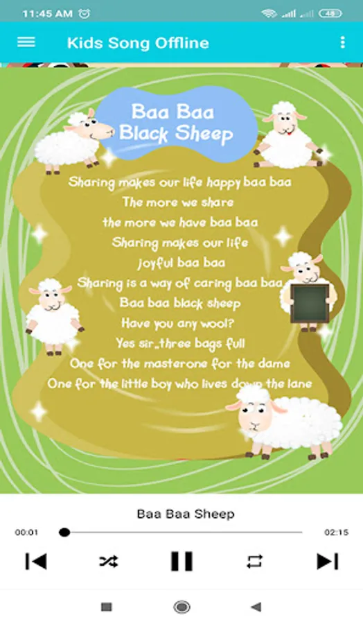 This Offline English Children Song is an education that teaches to learn English with singing media, while in the application of English children's songs there are 50 best kids songs and can be played without using an internet connection. This application is very interesting because it has many English songs, animations and song lyrics. As for the song among others: