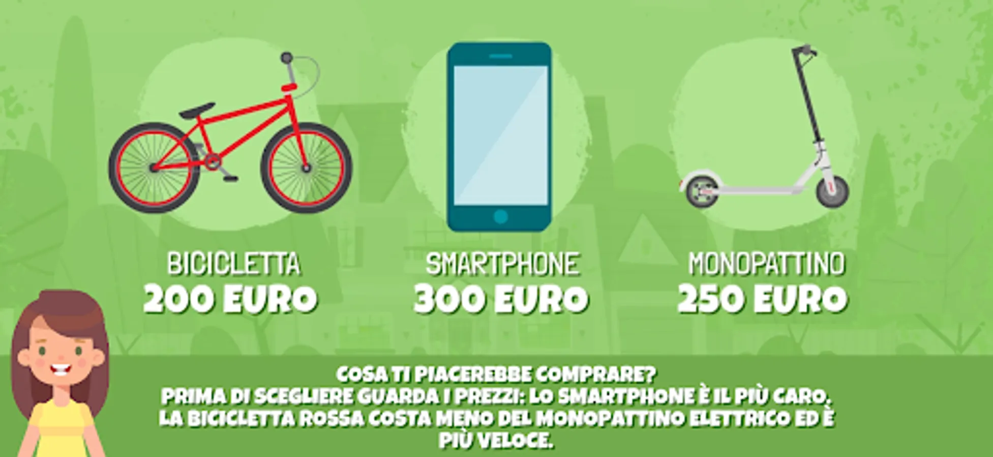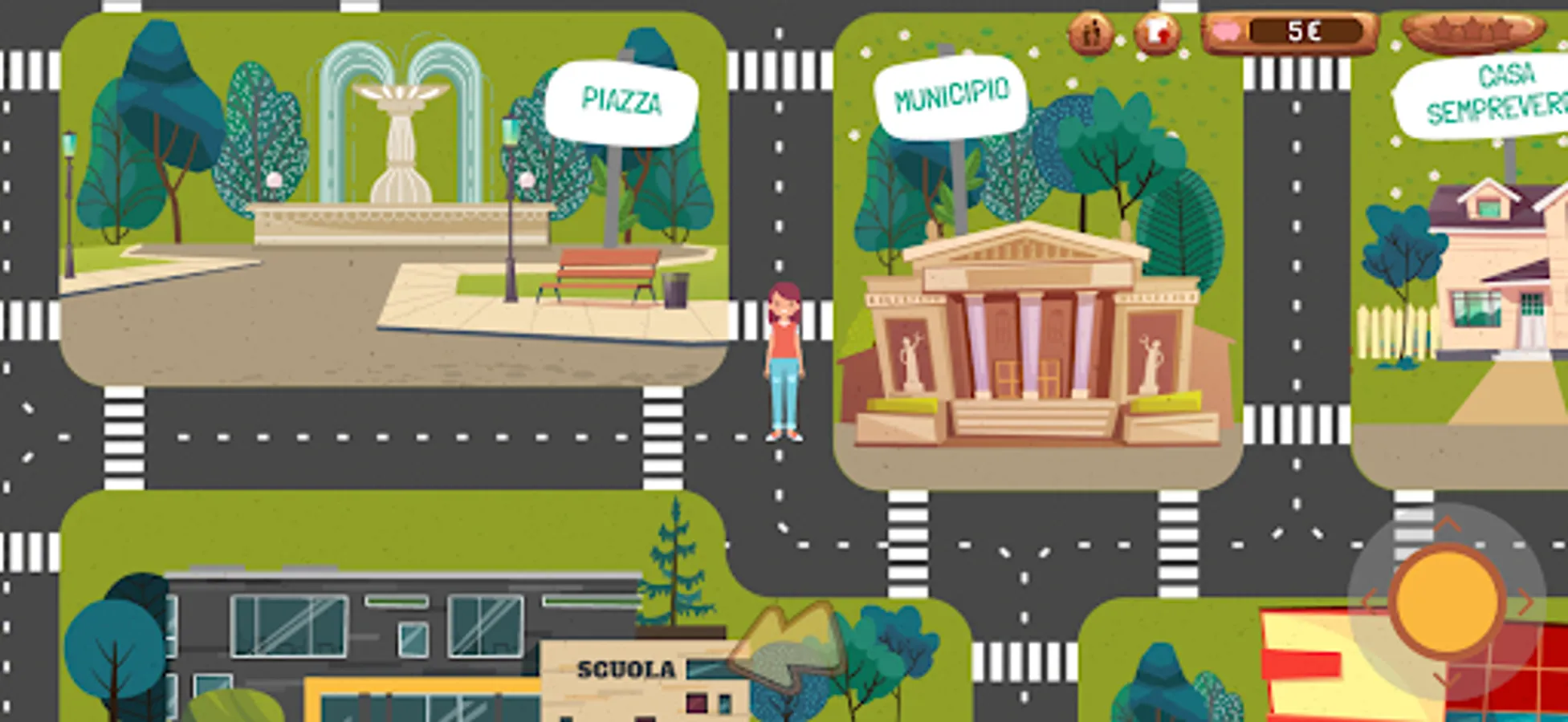 The APP is aimed at primary and secondary school pupils and includes three versions of the game, distinguished by age group: 5-8 years, 9-12 years and 13-18 years. In all versions, which feature the same setting, protagonists and dynamics, users will have to perform various actions, such as requesting information, receiving suggestions and dealing with some unforeseen events related to the management of personal finances, with the possibility of earning/losing points/money and with a level of complexity of the content and game difficulty for different age groups.