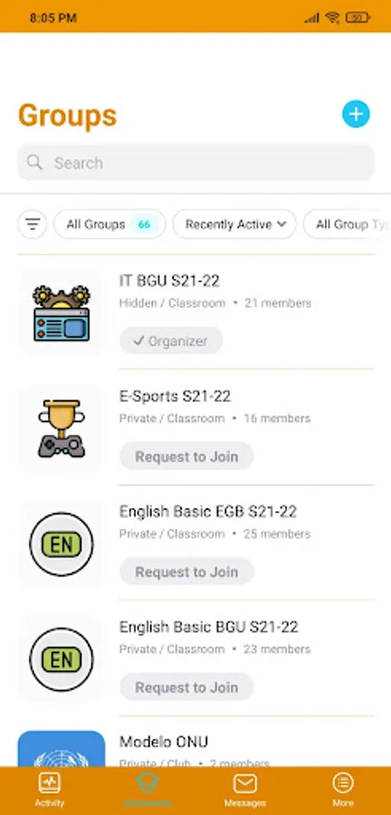 • Permite generar una comunidad estudiantil interna y organizada mediante grupos y comunidad en general.