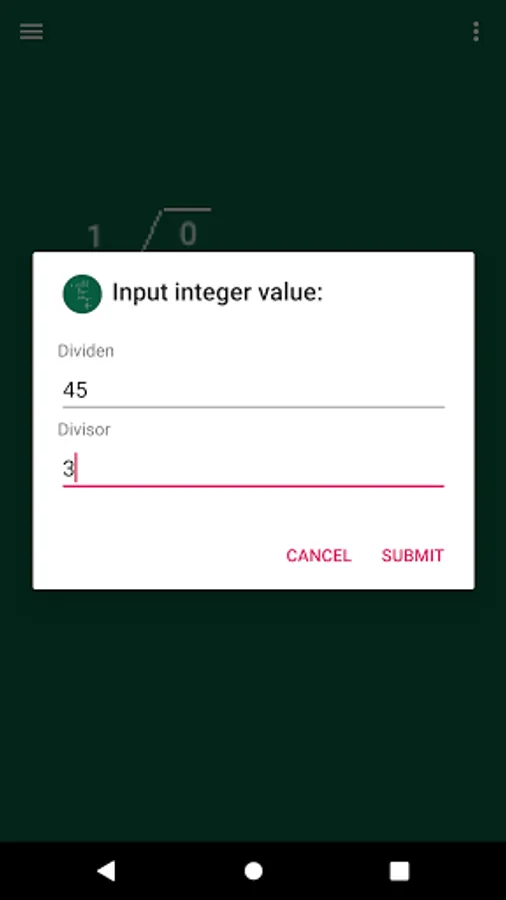 This app is simple calculator that can be used to display the long step of division step in math. You can just input the dividend and the divisor, where this app just support for positive integer input value. If the display is to small, you can zoom in/out by your finger touch.