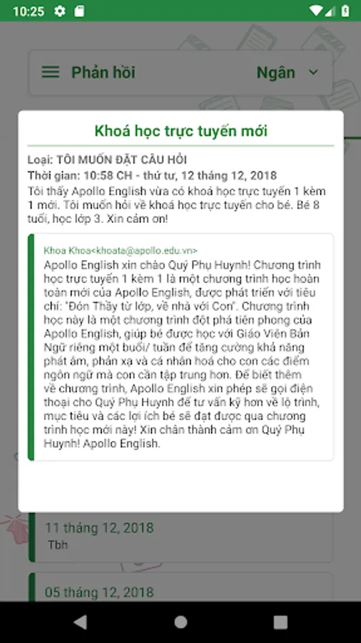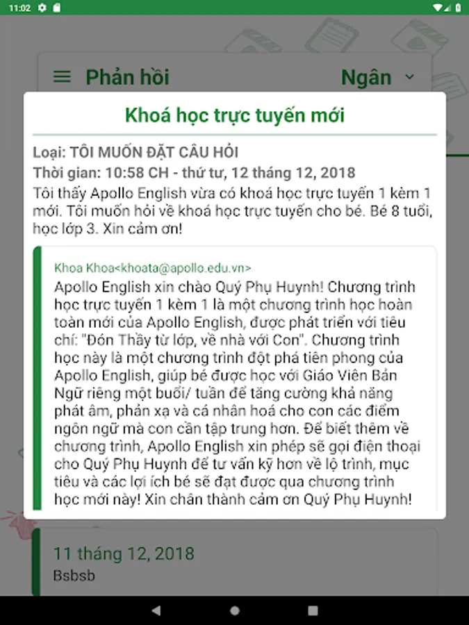 This application allows parents to stay informed about the learning progress of their children at Apollo English Center.
