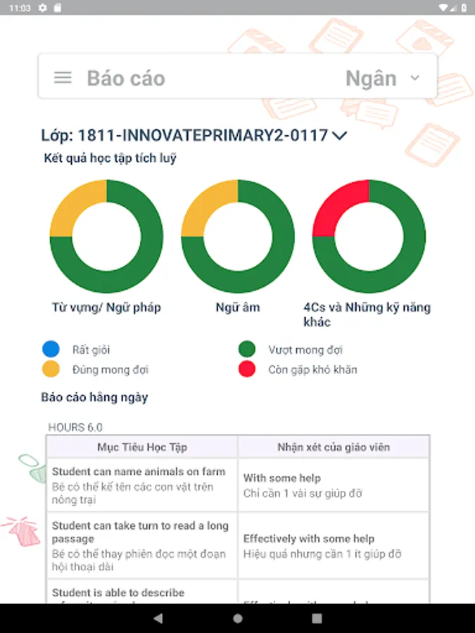 It provides detailed information on students' learning history as well as their most up-to-date performance with clear learning objectives and learning trends for parents. The application brings a lot of features whereby parents can be notified of their children's class calendar, gradebook, learning report, notification as well as sending feedback to the school.