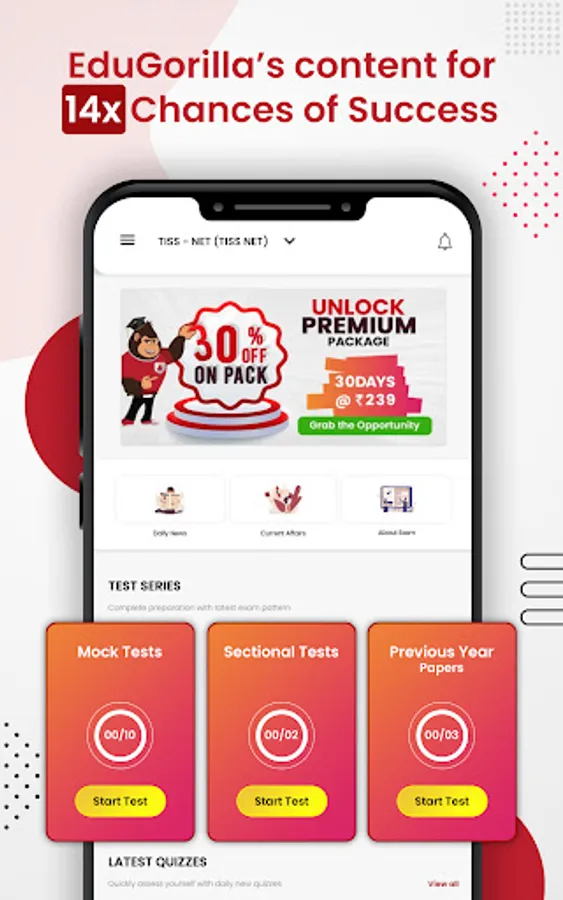 EduGorilla's TISS NET mock test app aims to improve students' preparation by improving their time management and problem-solving abilities. EduGorilla's TISS NET mock test app aims to maximize the preparation level of the student by enhancing their time management skills and problem-solving ability. Aspirants will find our TISS NET mock test app to be the most effective for preparing for such a difficult exam.