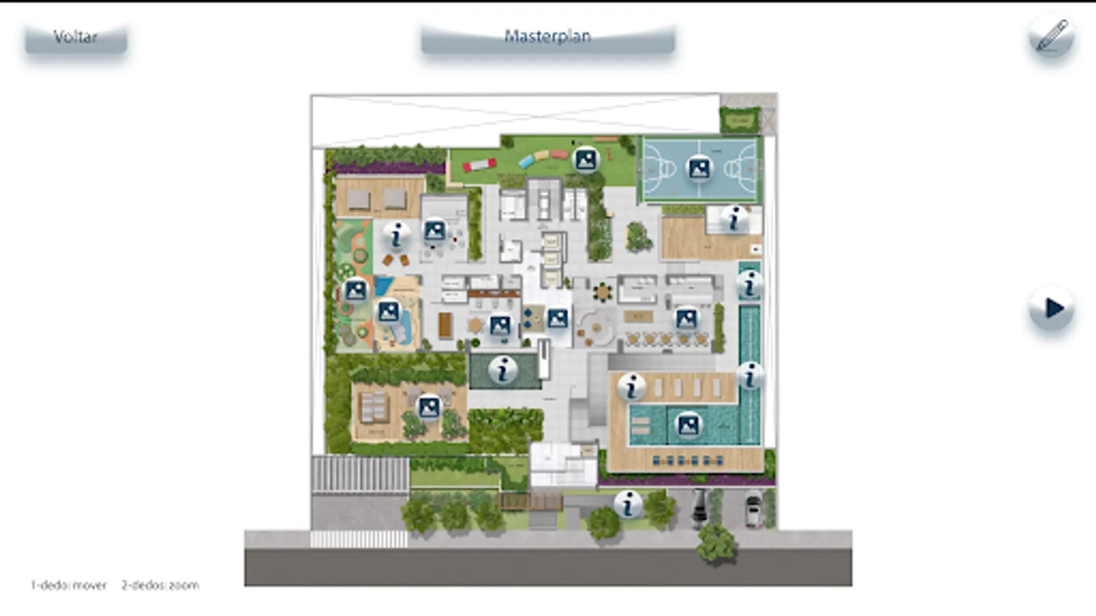 Explore all content about the development and interact with the environments and leisure areas.