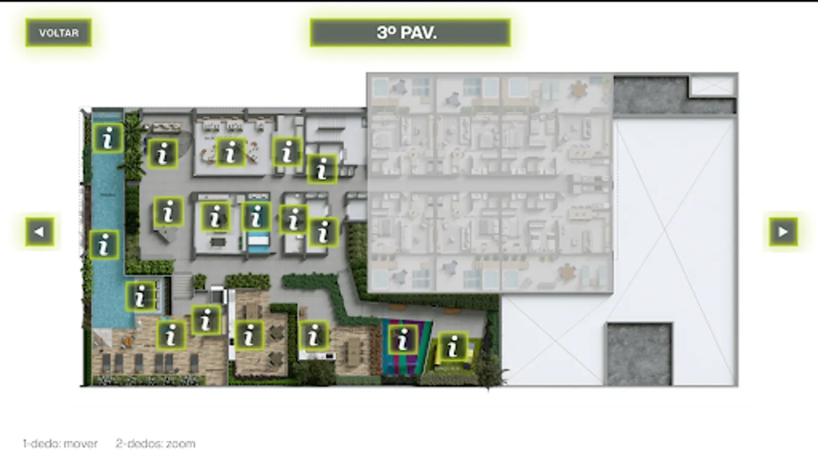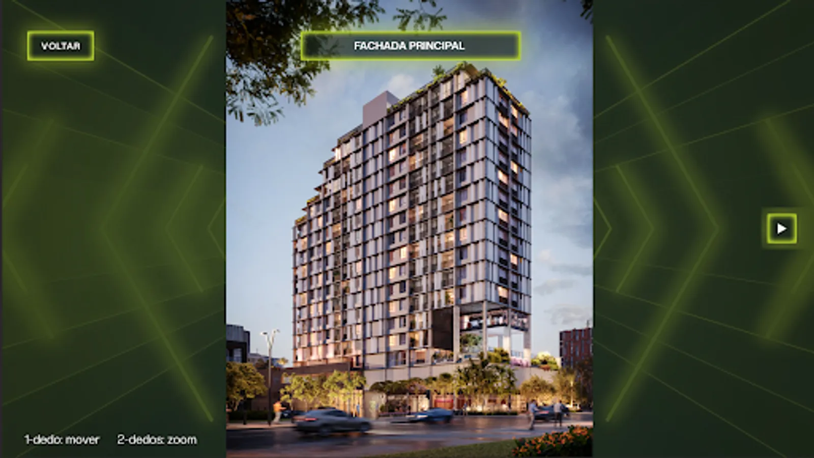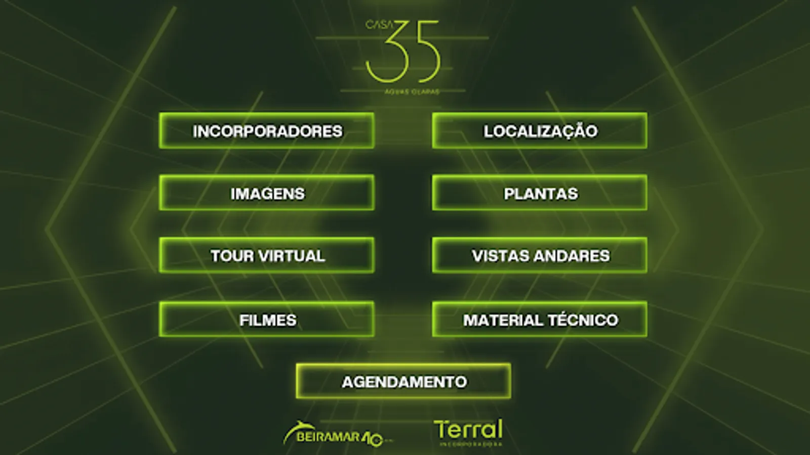 In this app, you can see all the features of the development, Casa 35, in Águas Claras, by Incorporadores Beiramar and Terral. We have perspectives, floor plans, floor views, virtual tours and many other features.