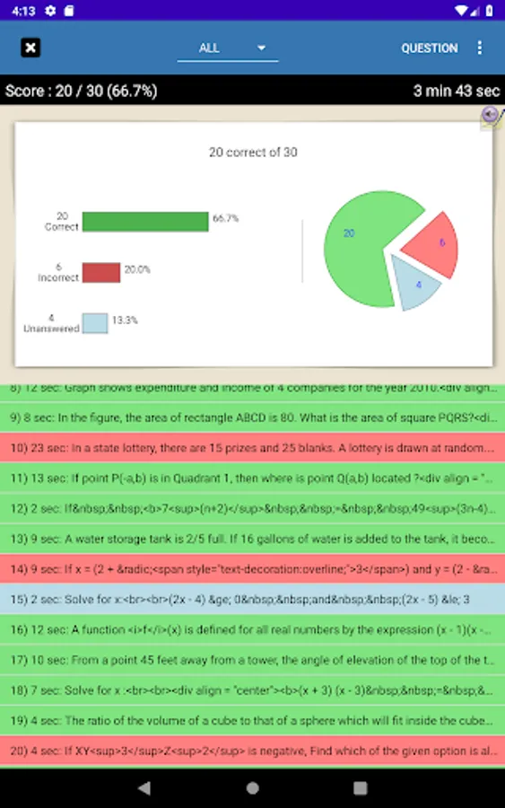 a) Score card, along with its graphical view, helps review performance. Provide time spent on each question.