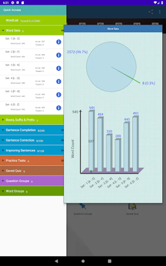 The hierarchal and intuitive arrangement of Question, Flashcards and Timed Tests gives an un-cluttering experience. Progress and performance tracking data/graphs are visible at every step.