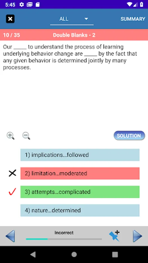 b) Summary gives you a birds-eye view of all questions. Jump to any question from question picker.