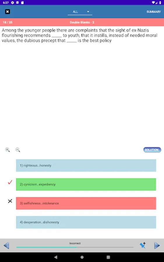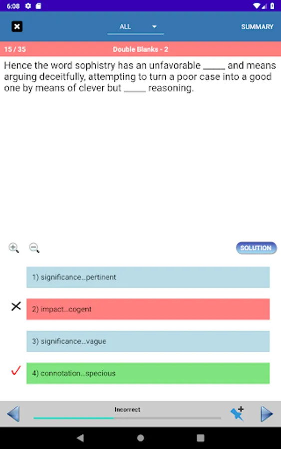 b) Summary gives you a birds-eye view of all questions. Jump to any question from question picker.