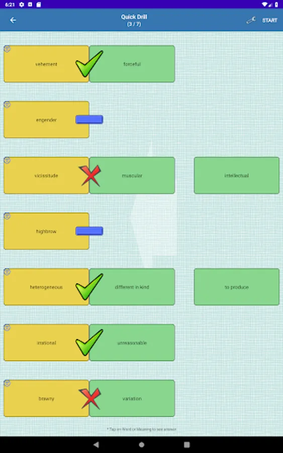 Takes preparation to the next level by narrow down wordlist by tossing words that are mastered, group words or take a quick Drill.