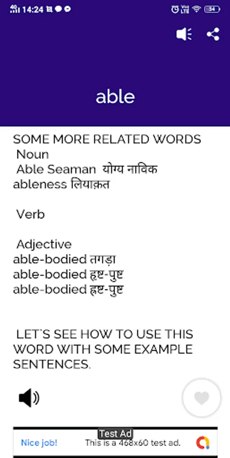 One more feature of this app is that you can listen the meaning and sentences. Means you can ask this app to read out the meaning and sentences for you. Because Human tend to remember if they listen. So you are going to get understanding and will learn how to pronunciation a particular word if you found something difficult to read. I am very hopeful that you will find this application very useful and you will be benefited with this app.
