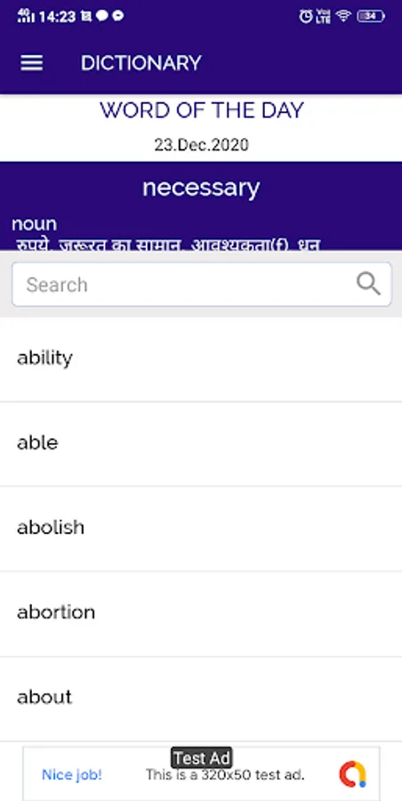 Best thing that I like our app is that each English vocabulary word supported by many many Hindi Meanings, synonyms along with their Grammar. I mean whether the word is a noun,verb,adjective or adverb. Not only thing every single word of this application also included real life example sentences showing the use of English word in a sentence. This makes our application unique and most useful.