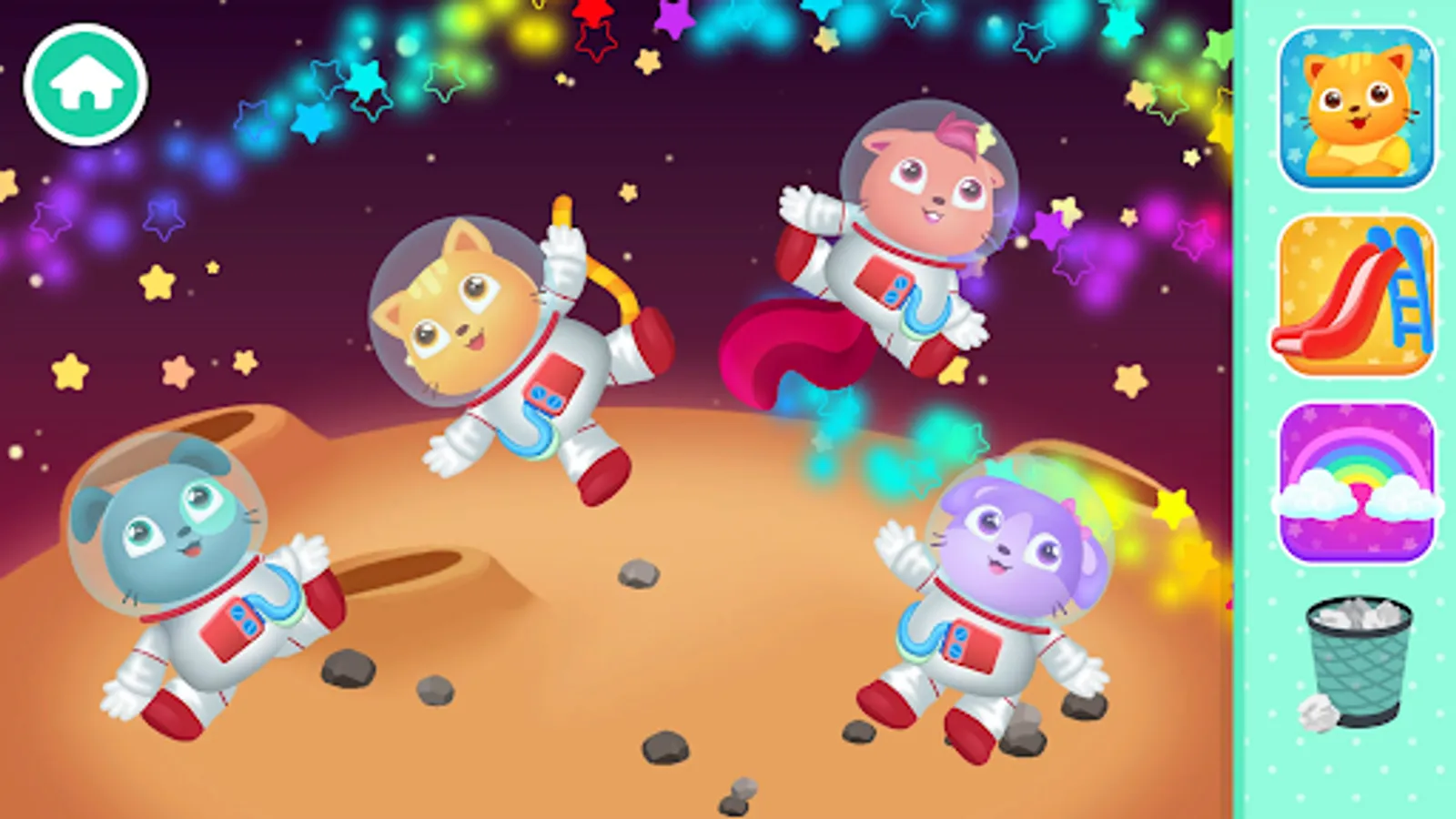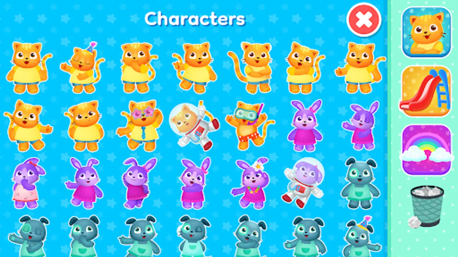 In this creative baby sticker game you can create any scene you can imagine with the stickers and entertain yourself for hours building stories and tales with the selected labels. This tap-and-drop sticker game can be one of your baby's favorite learning games.