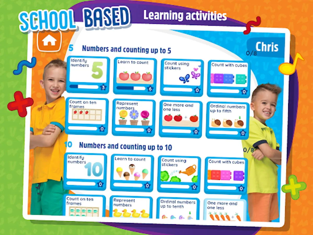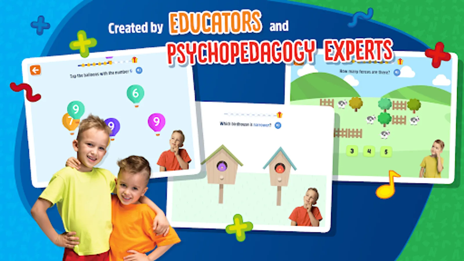 With fun math exercises of Vlad and Niki organized in different categories, children will learn basic mathematical concepts such as: