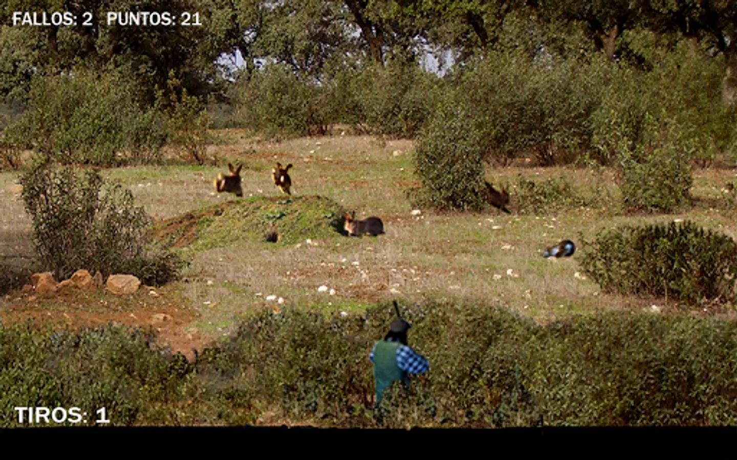 If you wait for the rabbit to run completely on its back or front and you hit it, you will get five extra points, in some levels from the fifth on, a hare will cross the screen on the run, if you manage to shoot it down it will also give you five points