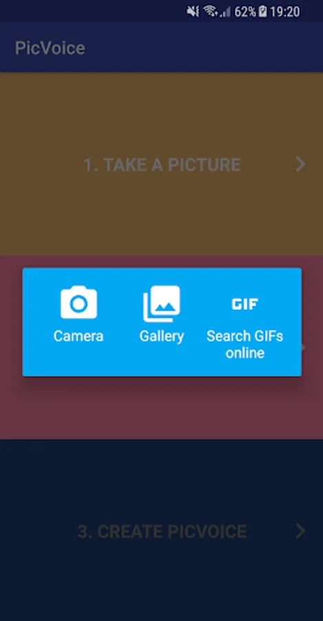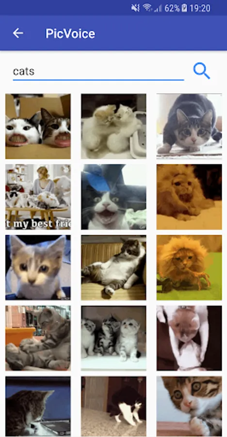 Just take a picture, pick one from the gallery or even search for GIFs in the in-app browser and record your voice. Then, you will have your PicVoice created and you can share it with your friends through WhatsApp, Instagram, etc.