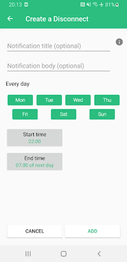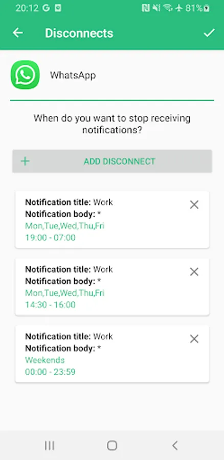 Disconnect allows you to stop receiving notifications whenever you want. You can mute notifications of specific applications, with a title and content that you want, at a certain time.