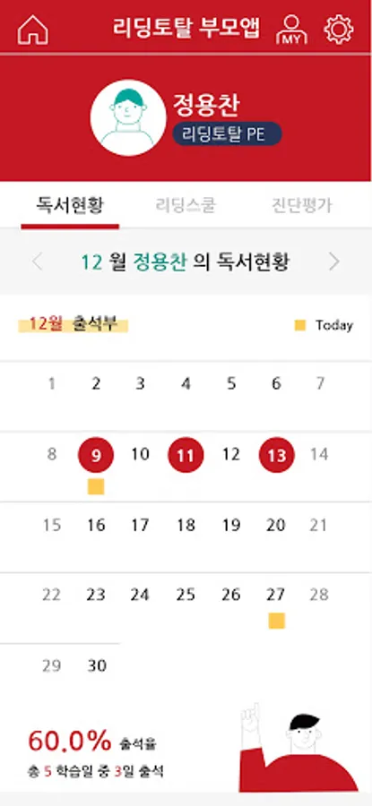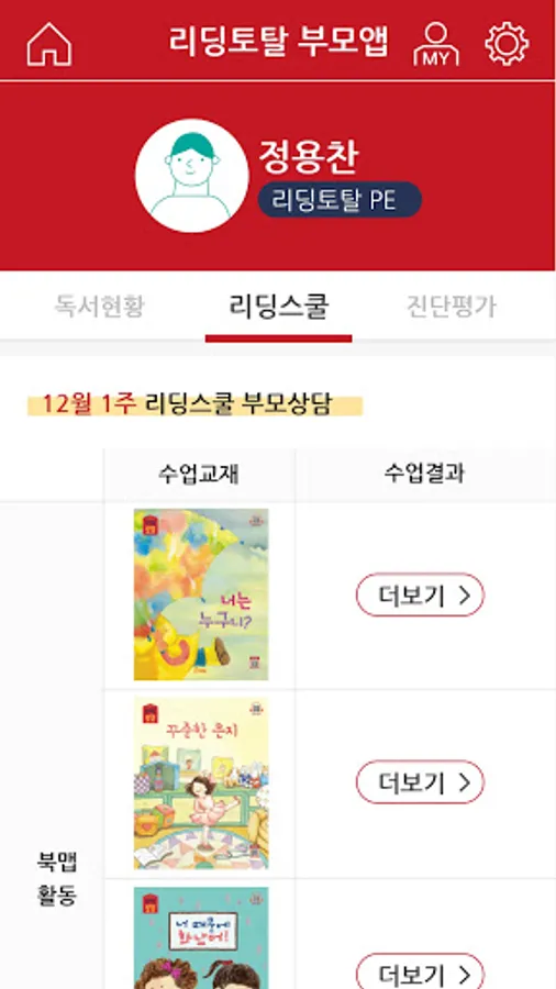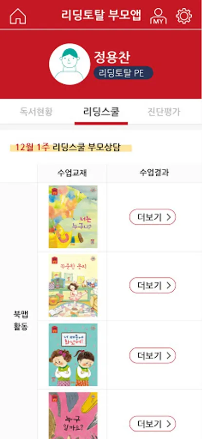 2. View class status: Check the progress, results, schedule, etc. of your child's Reading Total visit class.