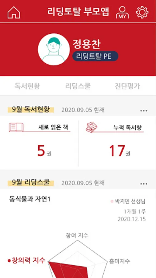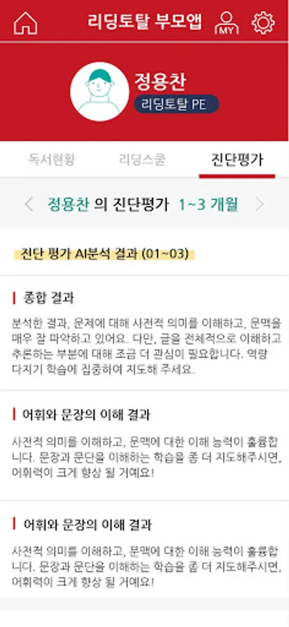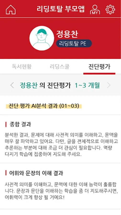 3. View evaluation status: Check the result of the child's reading total learning evaluation.