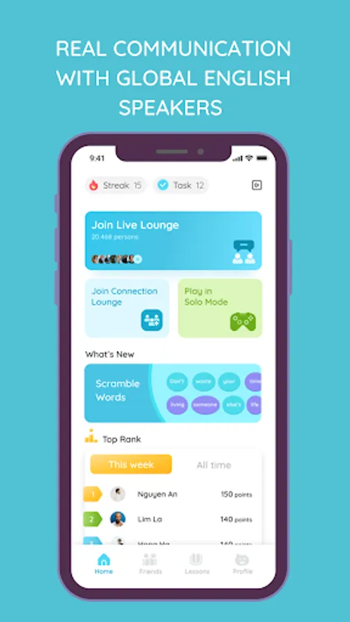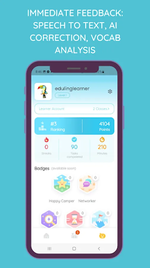 Being first of its kind and endorsed by leading experts in the field of task-based language teaching, Eduling Speak connects English learners to complete a task or game together by speaking in English. You can simply turn on the app, choose a task or game, and wait to be connected with another learner from anywhere in the world. It's convenient, effective, and fun. With 5-10 minutes of talking a day, improvements are guaranteed.