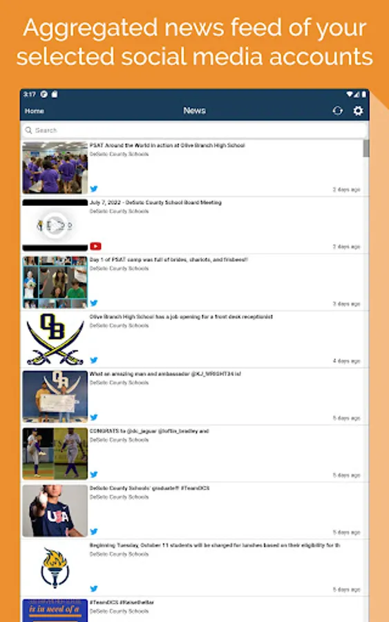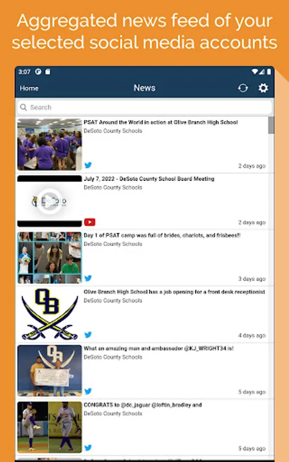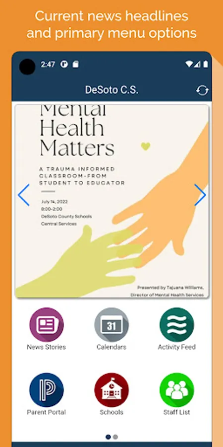 Stay informed of school and district announcements, activities and events at DeSoto County Schools. Receive important messages from the schools you select; monitor district and school activity from several social media networks, including Facebook, Twitter, Instagram and YouTube. Transfer any activity or event directly to your Google calendar with a single tap.