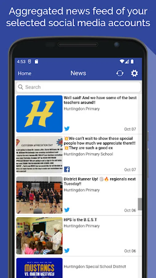 Stay informed of school and district announcements, activities, sports schedules and events at Huntingdon Special School District. Receive important messages from your selected list of schools; monitor district and school activities from social media networks including Facebook, Twitter and Instagram. Transfer any activity or event directly to your Google calendar with a single tap.